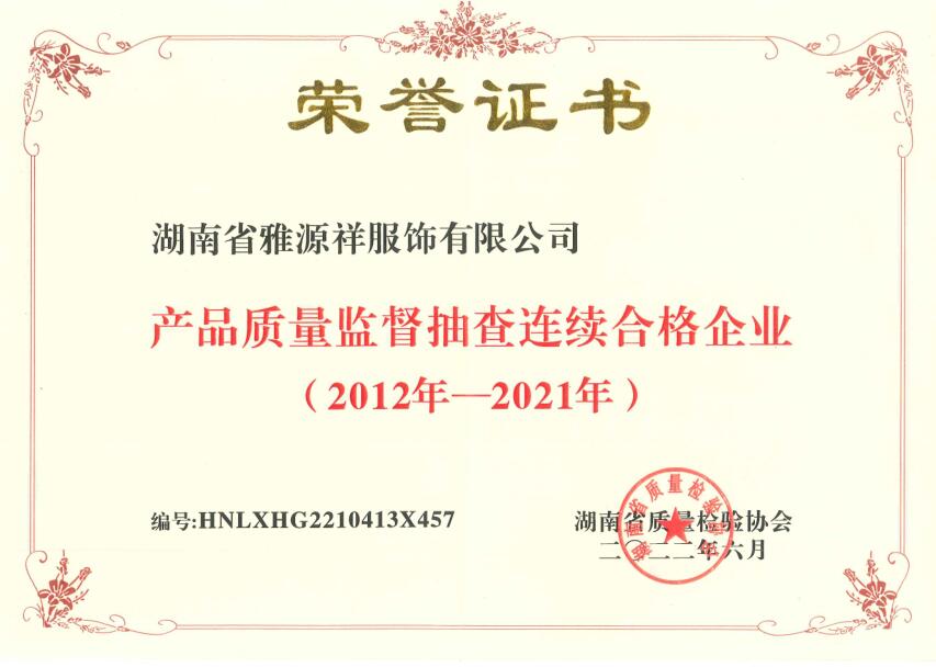 產(chǎn)品質量監(jiān)督抽查連續(xù)合格...